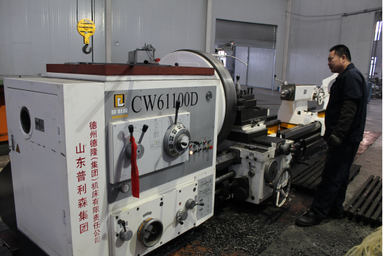 这是一台德州产CW61100D型车床,也就是我们常说的50车床。此前,我公司先后购置了TX6110型镗床,CDE140车床,CW6163E车床等较为先进的加工设备,基本涵盖了主项主件及精密件的所有加工工序,为提高产品质量、打造优质产品提供了硬件设施。