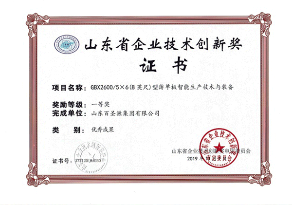 公司创新成果获山东省企业技术创新优秀成果一等奖、优秀新产品二等奖